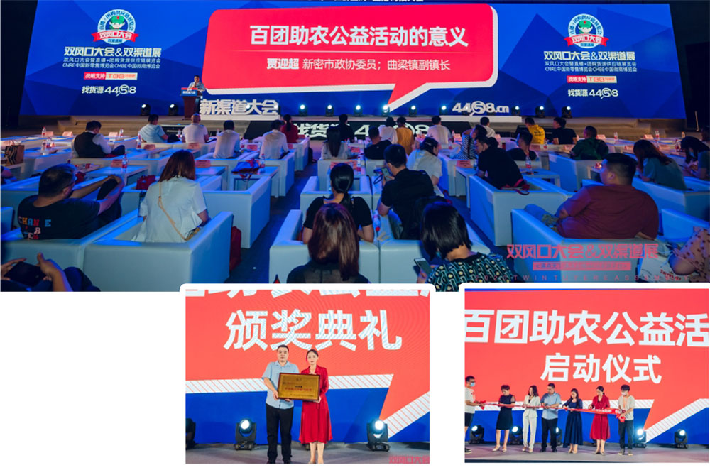 新密市政協委員、曲梁鎮副鎮長賈迎超對百團助農公益活動給予了肯定,并在現場給沸點天下授予特殊貢獻獎,同時也為參與到公益助農的各個社群團購平臺代表授予了證書。百團助農公益活動通過717新渠道大會正式啟動。