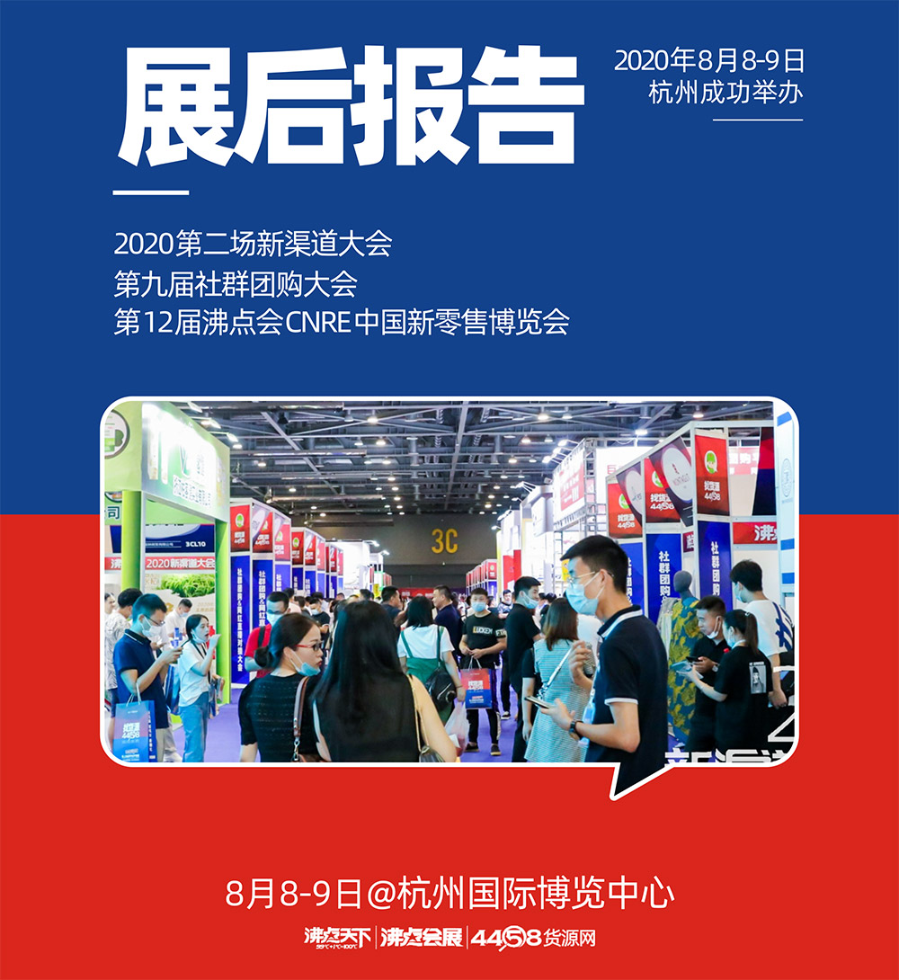 2020年第二屆新渠道大會(huì)、第九屆社群團(tuán)購大會(huì)、第12屆沸點(diǎn)會(huì)CNRE新零售博覽會(huì)于8月8日-9日在杭州國際博覽中心召開,來自全國范圍的品牌方、供應(yīng)鏈、平臺(tái)、新渠道創(chuàng)業(yè)者齊聚杭州,萬人匯聚共同探討新渠道,新機(jī)遇,新增長。