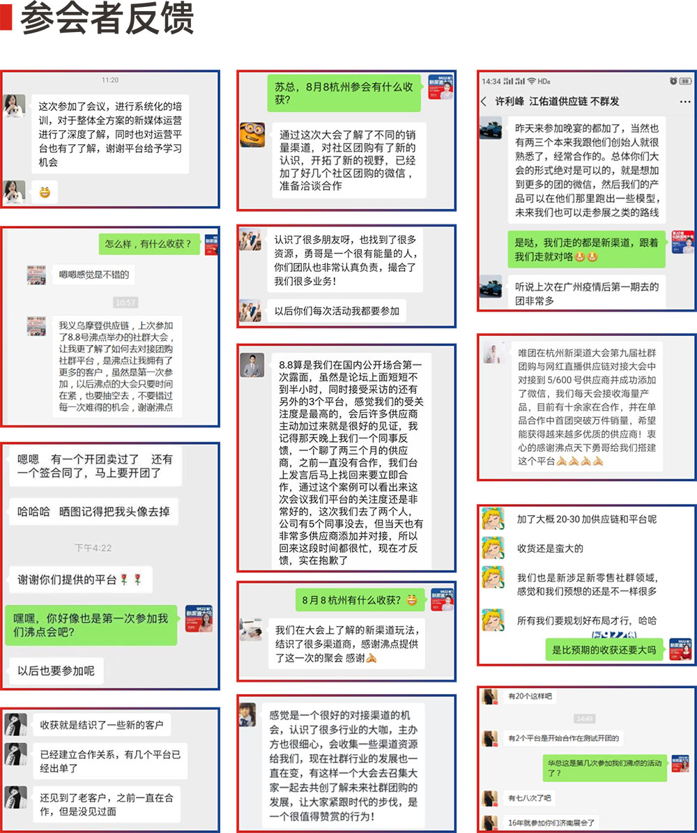 社群團(tuán)購大會(huì)自2019年3月22日創(chuàng)辦至今,已經(jīng)成功舉辦到第九屆了,8月9日在杭州國際博覽中心召開,眾多新老社群團(tuán)購平臺(tái)濟(jì)濟(jì)一堂、群英薈萃,再次引發(fā)了整個(gè)行業(yè)的轟動(dòng),大會(huì)在推動(dòng)社群團(tuán)隊(duì)產(chǎn)業(yè)的發(fā)展,和對(duì)平臺(tái)與貨源方的資源對(duì)接起到至關(guān)重要的作用。