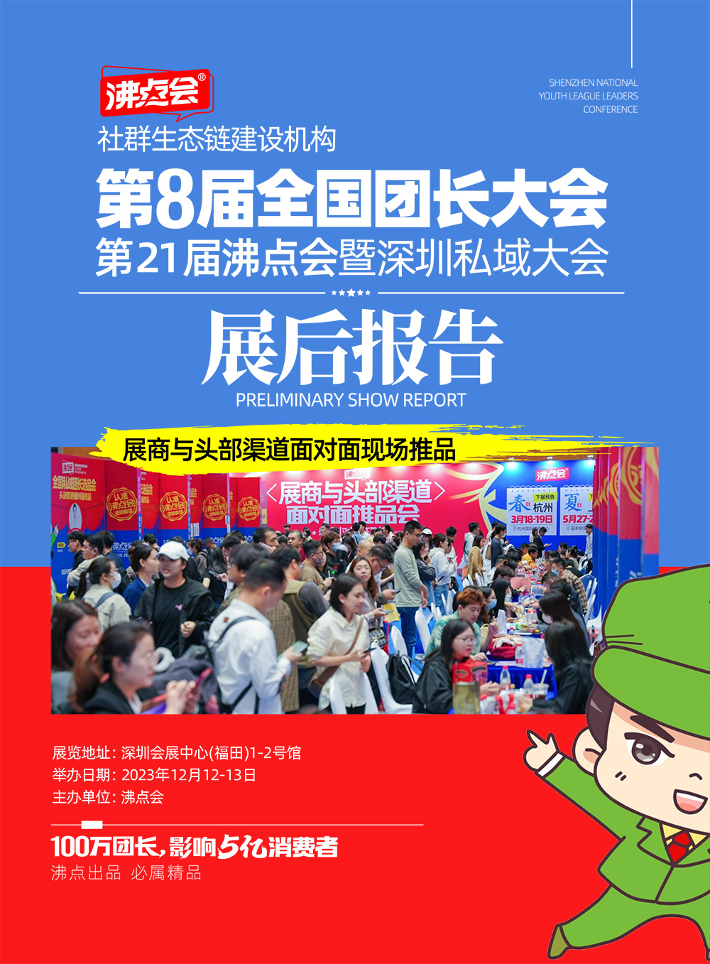 2023年12月12-13日,由沸點(diǎn)天下創(chuàng)辦,沸點(diǎn)會(huì)展舉辦的第21屆沸點(diǎn)會(huì)暨深圳全國(guó)團(tuán)長(zhǎng)選品會(huì),全國(guó)私域大會(huì),私域帶貨節(jié)在深圳會(huì)展中心(福田)1&2號(hào)館成功舉辦。