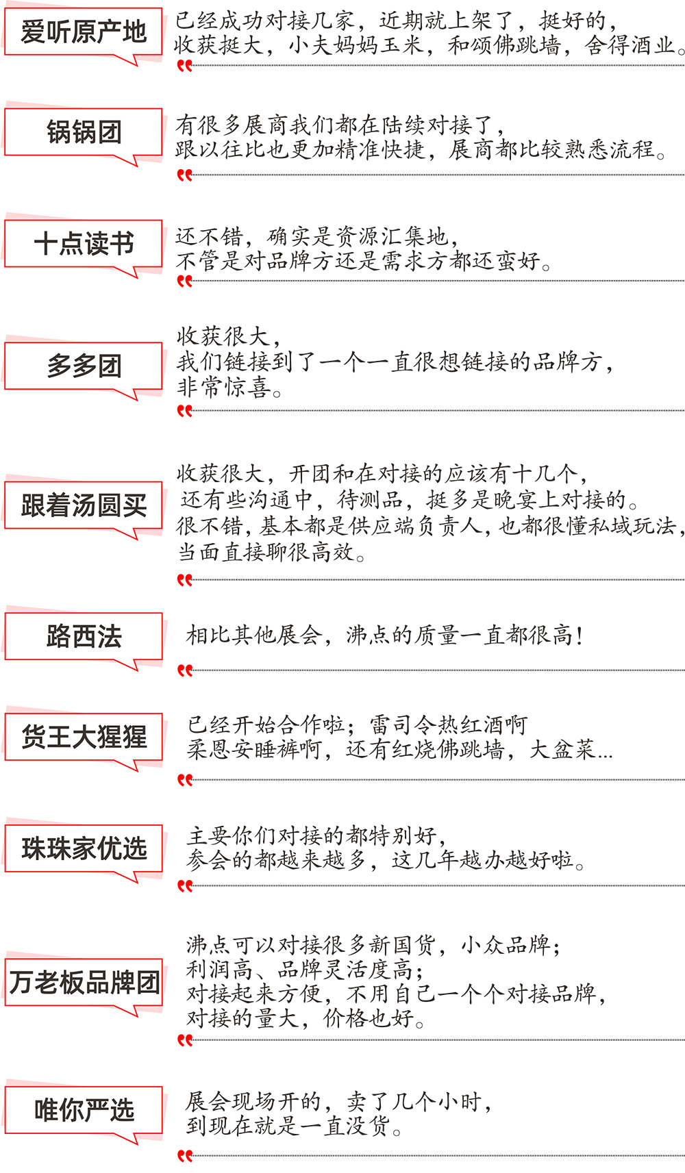 面對(duì)面推品對(duì)接會(huì)環(huán)節(jié),頭部渠道設(shè)選品位,第21屆沸點(diǎn)會(huì)展商帶著產(chǎn)品前來(lái)推品,精準(zhǔn)對(duì)接。