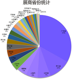 本次參展廣東省本省展商比例占33.19%,可見(jiàn)重復(fù)在一個(gè)省辦展對(duì)當(dāng)?shù)氐挠绊懽饔眠是挺大的。