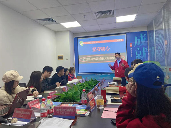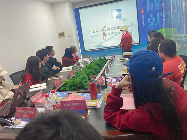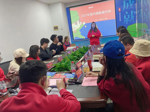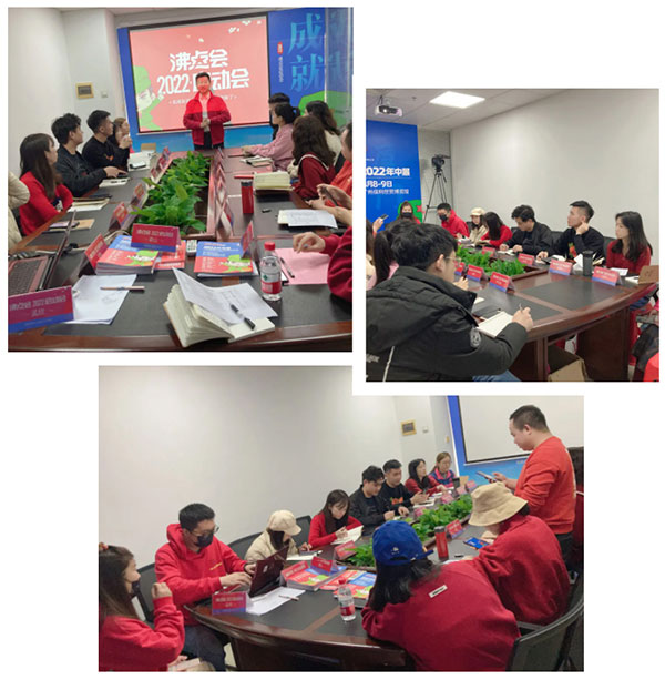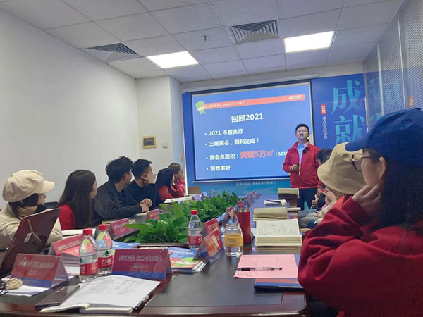 沸點會展總經理姜山在會上分析了2個榜樣展會的案例,并且說:沸點天下引領著新渠道這個賽道,我們不僅搶到了先機,還一直推動著渠道的發展;2022將是各個品類進入新渠道的一年,我們所有人在把握機會,同時遵守沸點天下2個黃金法則:聽話,照做;跟緊公司的步伐,2022每個人都將目標達成。