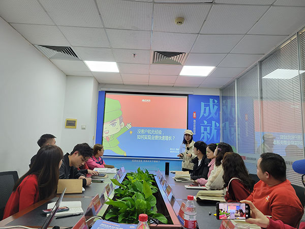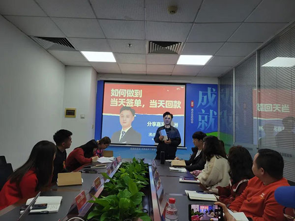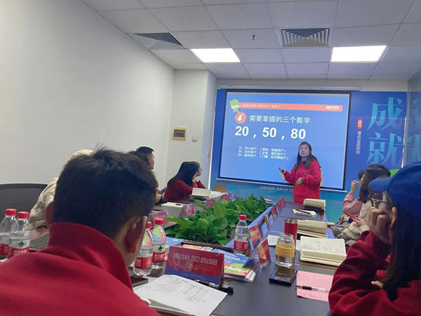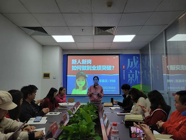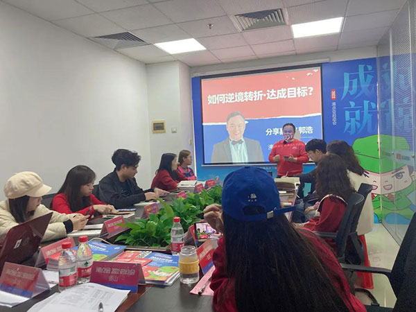 接著是經驗分享環節:郭浩分享了自己如何在心態不好,業績落差很大的情況下,如何設定目標,把握優勢,實現業績突破,并成為2021年年度冠軍的;