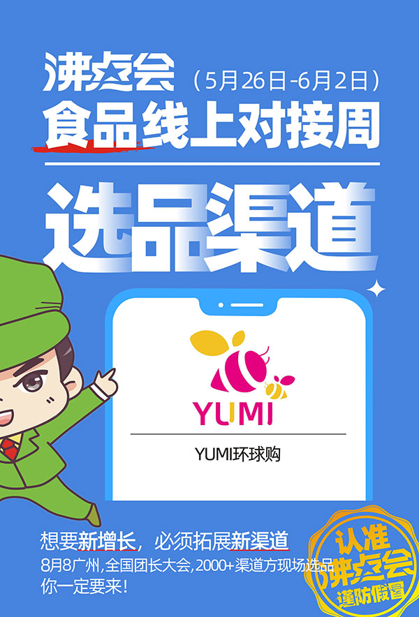 5月26日-6月1日,為助力食品企業(yè)精準(zhǔn)對接社群渠道資源,把握社群食品品類的銷售增長機遇,沸點會展特打造【沸點會.食品對接專場】。目前,YUMI環(huán)球購確認(rèn)出席沸點會·食品線上對接周。