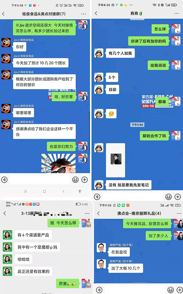 由沸點會展舉辦的沸點會.食品線上周第2場,預制冷凍食品專場,今天在專場對接群舉辦。活動剛剛結束,就有展商反饋:已經有4個渠道方加我了,其中一個是魔都P媽!線上對接還是有效果的!