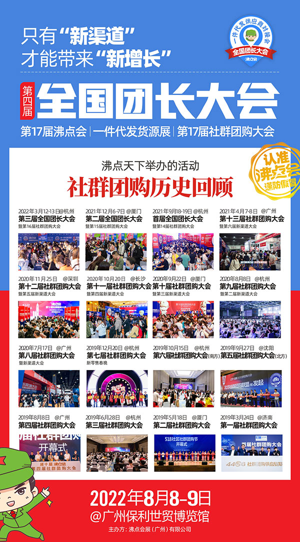 沸點(diǎn)會(huì)展是沸點(diǎn)會(huì),一件代發(fā)貨源展的舉辦方,都說(shuō)貨源是團(tuán)長(zhǎng)的咽喉,沸點(diǎn)會(huì)以展品專業(yè),鏈接環(huán)節(jié)多,渠道精準(zhǔn),深受歡迎,沸點(diǎn)會(huì)展的“直播+社群團(tuán)購(gòu)貨源供應(yīng)鏈展覽會(huì)”被評(píng)選為廣東省百?gòu)?qiáng)會(huì)展項(xiàng)目!