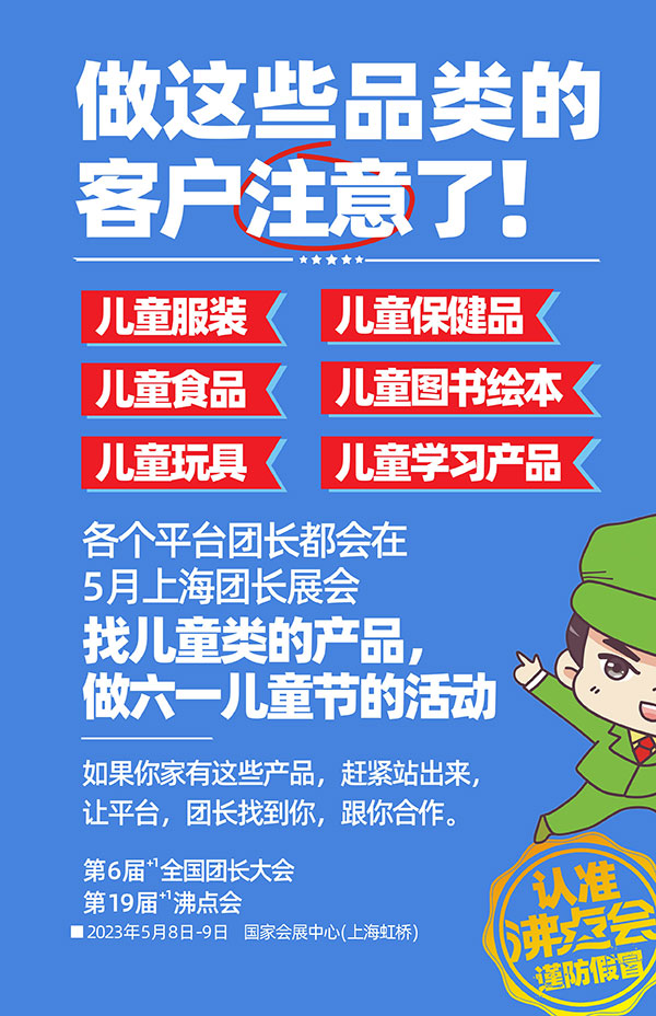 5月8上海團長展會,國家會展中心(上海)2.2號館,估得好的團長,平臺都會來選品,如果你是做兒童類產品,想要跟團長呀,平臺合作,趕緊來對接。