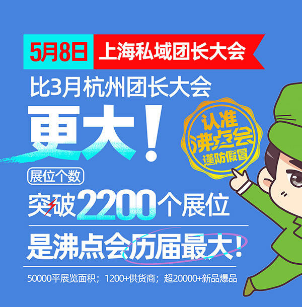 據私域電商大會舉辦方,沸點會展消息,5月8上海團長展會規(guī)模超越3月杭州展會成為沸點會史上最大規(guī)模。