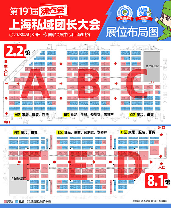 而5月8上海團長展會共計2個館,面積超5萬平,規(guī)劃出2200個國際標準展位,一躍成為沸點會史上最大規(guī)模。