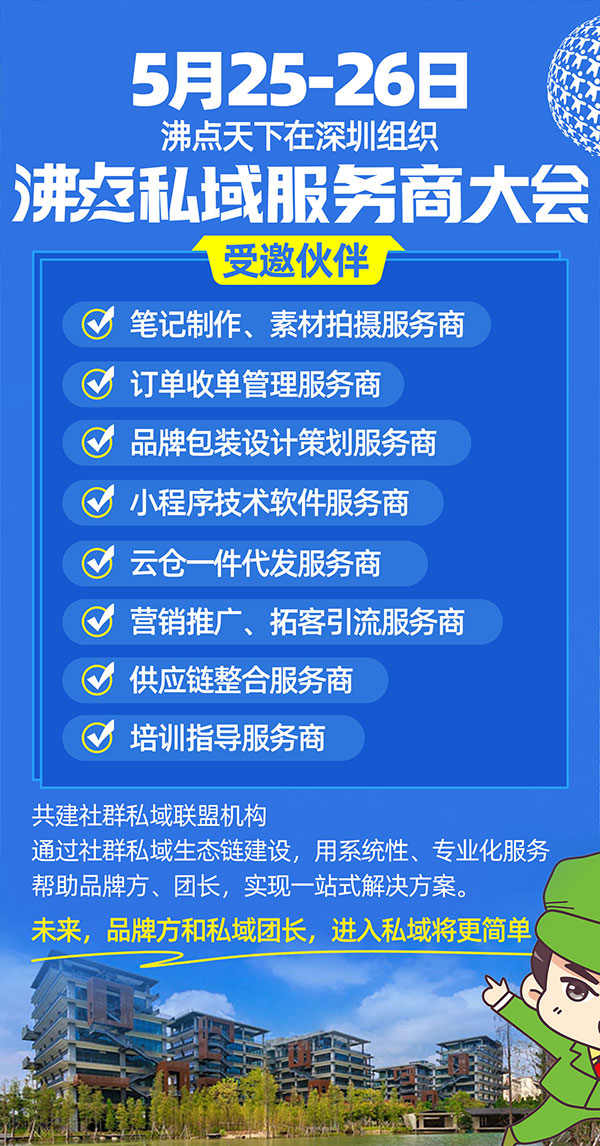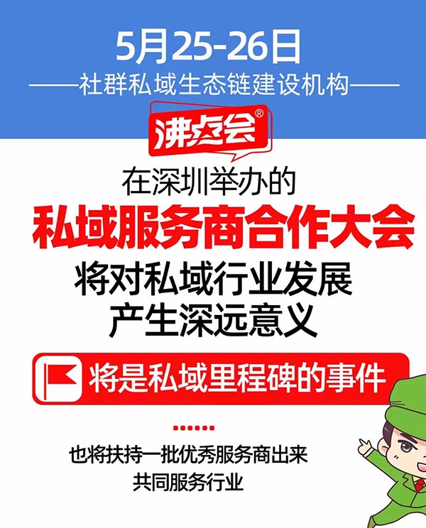 5月25-26日,沸點天下將在深圳組織沸點私域服務(wù)商大會,沸點天下創(chuàng)始人勇哥說:這將活動對于整個社群私域來說,都將意義深遠(yuǎn)。