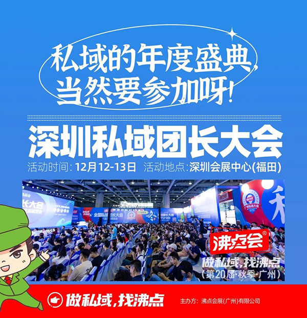 1212深圳私域大會,是沸點的第21屆沸點會,也是私域賽道的年底盛典,做得好的品牌,團長都會來選品。