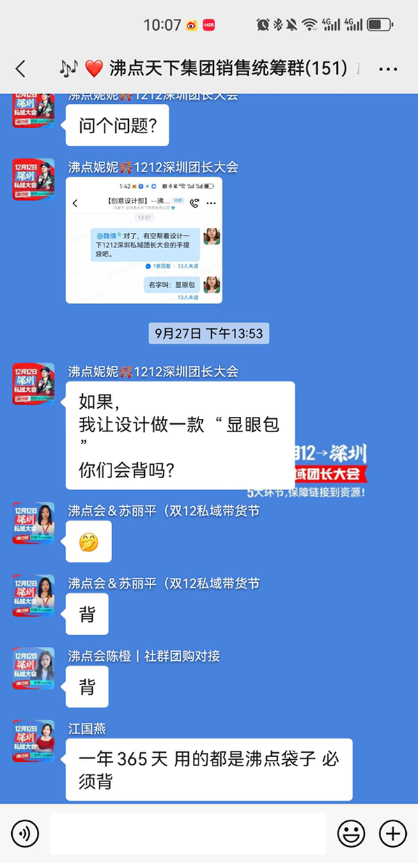 談到為什么想到給雙12私域帶貨節的帆布會取名顯眼包,沸點妮妮說,源于內部的1個玩笑,在一次內部培訓活動中,有個同事挺搞笑的,同事說:象個顯眼包。