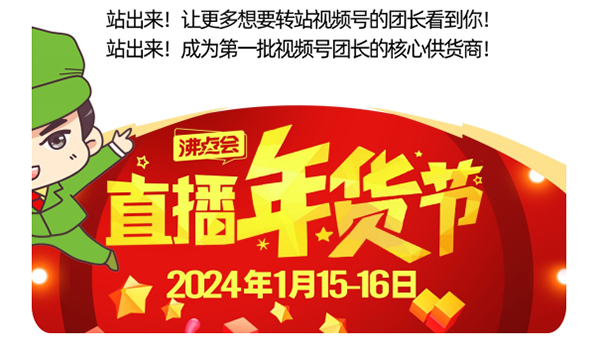 希望通過這次直播年貨節(jié)活動(dòng),帶動(dòng)百萬團(tuán)長(zhǎng)將轉(zhuǎn)戰(zhàn)視頻號(hào)!
