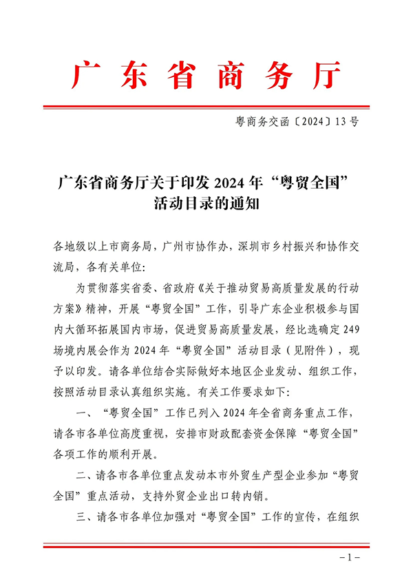 1月24日,廣東省商務廳發布2024年“粵貿全國”活動目錄,由沸點會展(廣州)有限公司主辦的第22屆沸點會(杭州)直播+社群團購貨源展覽會、第23屆沸點會(上海)直播+社群團購貨源展覽會、第24屆沸點會(廣州)直播+社群團購貨源展覽會、三展一并成功入選。“粵貿全國”活動是廣東省經濟貿易工作重點推進工程,屬于廣東省貿易高質量發展十大工程。自2021年啟動以來,持續高效助力廣東企業深耕國內市場,為廣東高質量發展注入新動能。入選“粵貿全國”展會,意味著沸點會及直播+社群團購貨源展覽會在推動直播及團購私域新電商的經貿發展得到進一步肯定。