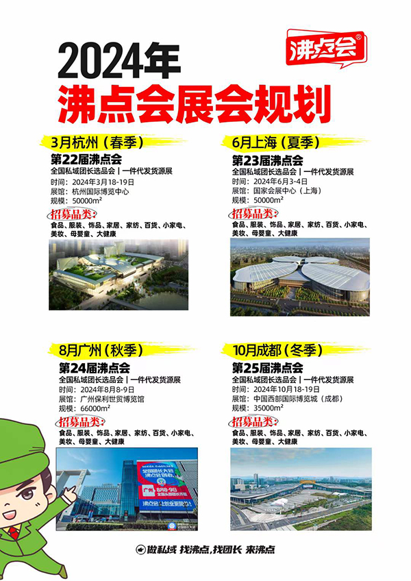 第22屆沸點會(杭州)直播+社群團購貨源展覽會舉辦時間:2024年3月18-19日,舉辦地點:杭州國際博覽中心