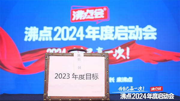 接著,就是【回顧2023】年目標,沸點會展總經理姜山,深圳沸點天下銷售總監黃略,打開了2023年啟動會時同事制定的目標。