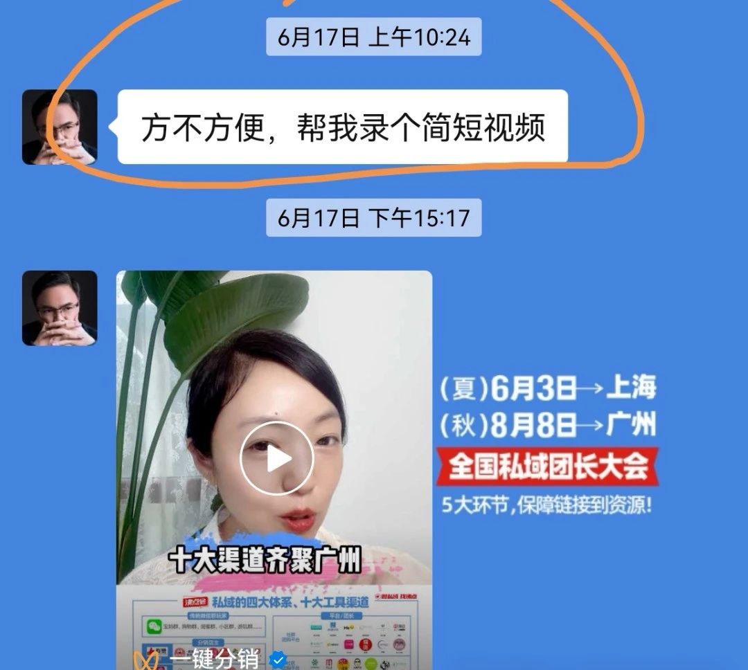 - 6月17日:勇哥群發(fā)消息,請(qǐng)求錄制簡(jiǎn)短視頻,并提供視頻案例。