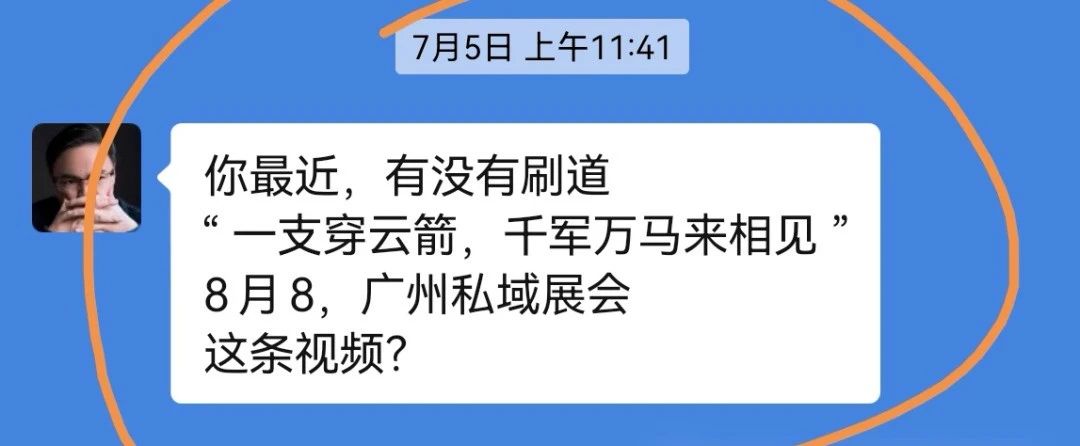 - 7月5日再次群發(fā)消息,詢(xún)問(wèn)是否刷到“一支穿云箭,千軍萬(wàn)馬來(lái)相見(jiàn)”的視頻。