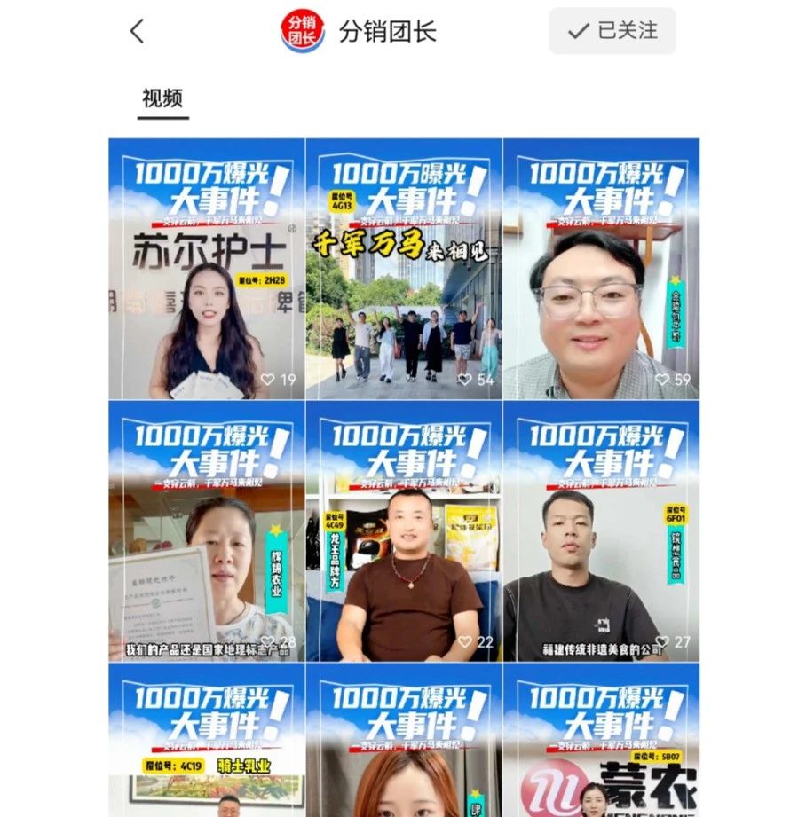- 7月10日:分銷(xiāo)團(tuán)長(zhǎng)視頻號(hào)的視頻底圖出現(xiàn)“1000萬(wàn)曝光大事件”字樣。