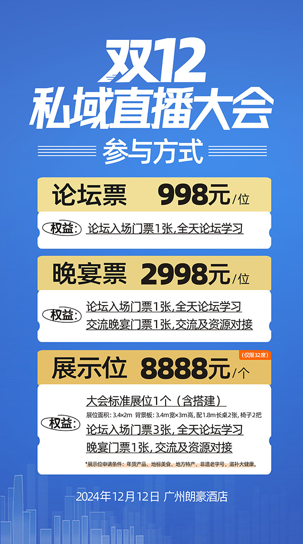 由沸點會在2024年底雙十二(12月12)之際,在廣州舉辦私域直播大會暨直播年貨節選品會。