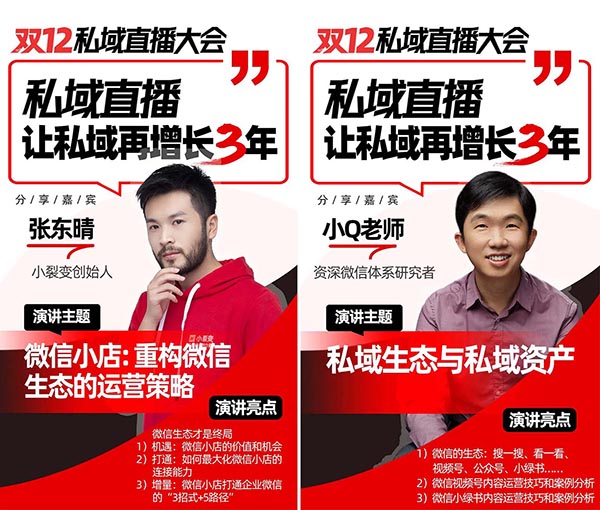 也邀請到了微信生態系的小裂變創始人張東晴和微信資深研究者小Q老師,分享如何運用好微信生態做好私域,他們會分享如何使用好微信小店、微信視頻號以及微信小綠書等建立自己的私域。
