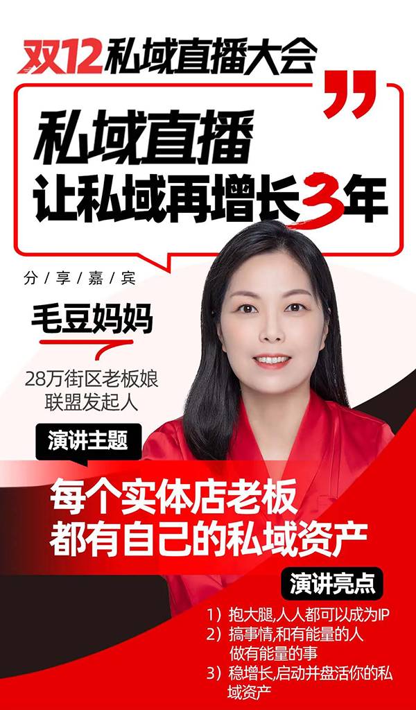 毛豆媽媽也會分享她如何利用街區老板娘這個IP,聚攏全國2843個城市打造28萬老板娘的打法。幫助每一個實體店老板娘建立自己的私域資產。
