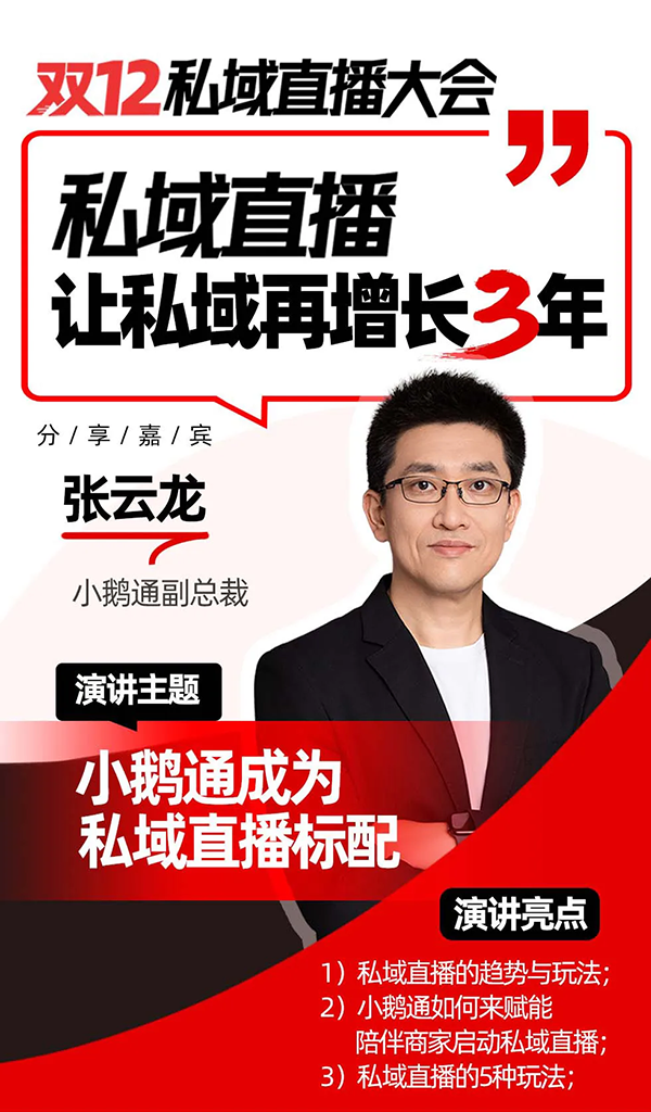 (1)想要做私域直播平臺系統的,我們邀請了小鵝通副總裁張云龍來分享他們如何賦能陪跑;