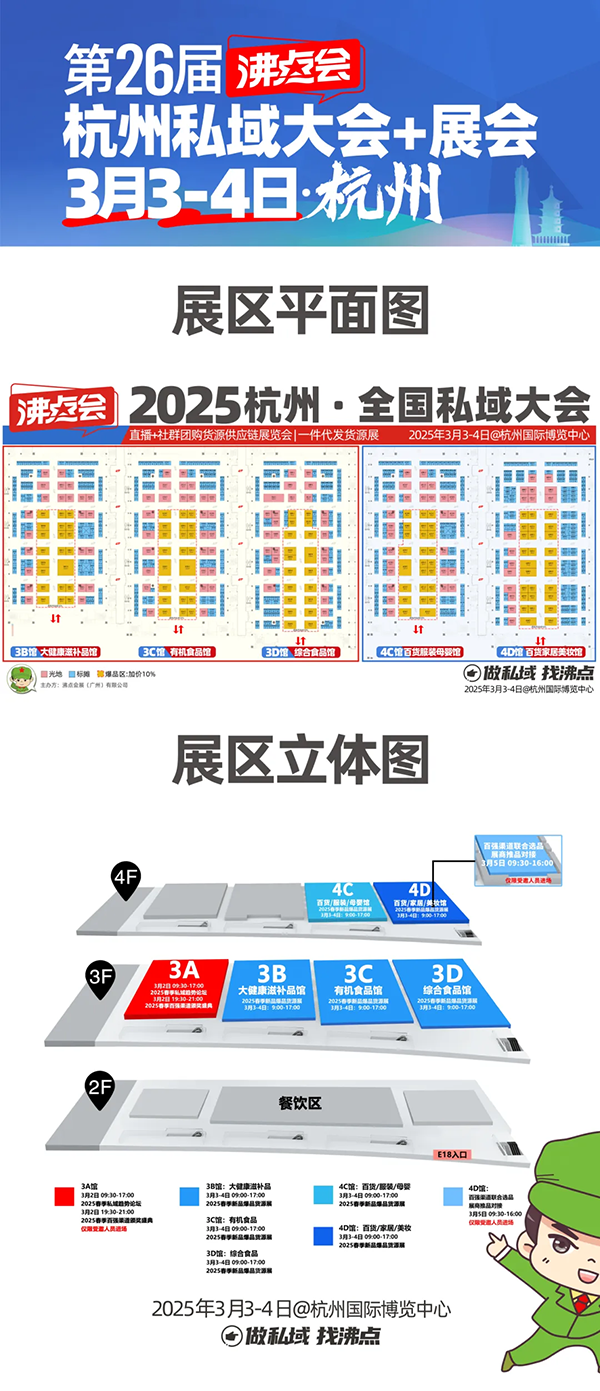 沸點會杭州私域展(私域直播選品會)將在2025年3月2-4日在杭州國際博覽中心舉辦。1000+展商攜10000+新品爆品登場,同期沸點會2025私域直播大會籌備中。現(xiàn)在誠邀工廠、實體、品牌等企業(yè)參展,共尋增長機遇。