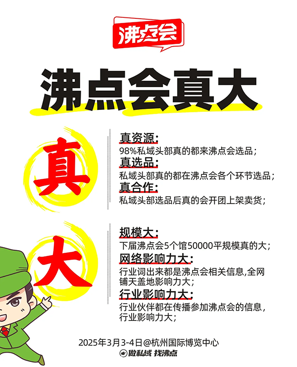 2025年3月3日杭州私域展會(huì),五大展館,超50000平米展覽面積,可容納超千家展商,以及上萬(wàn)款新品爆品。