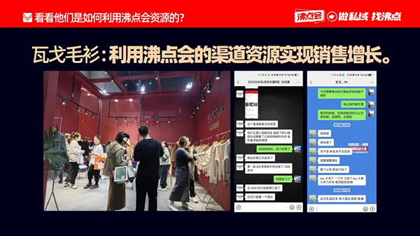 瓦戈毛衫,最初也是沒有私域經驗;當公司決定做私域后,他們報名了沸點會5月份的展會,8月份,以及10月份展會。他們說:因為不懂私域,所以在旺季來之前,提前學習,準備。10月份的時候,他們展位人氣爆滿,展會后,溯源不斷。從1個人做私域,到現在建了團隊做,現在已經定了明年的展會了,計劃全年參加。
