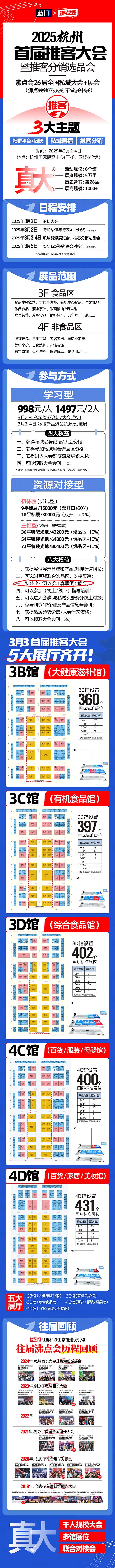 由沸點(diǎn)會(huì)聯(lián)合藍(lán)門公司聯(lián)合舉辦的杭州首屆推客分銷大會(huì)定于2025年3月2-4日在杭州國際博覽中心舉辦!活動(dòng)由推客分銷大會(huì)和推客分銷選品對(duì)接會(huì)組成,活動(dòng)時(shí)間三天,一天行業(yè)發(fā)展論壇,二天貨源展覽對(duì)接!