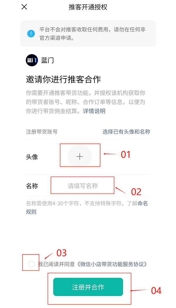 - 根據提示選擇或上傳你的微信頭像和昵稱(用于推廣展示)。