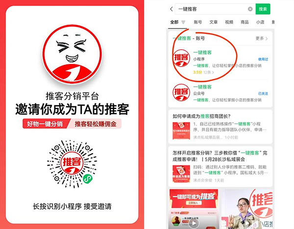 第一步,通過其它人分享“邀請碼”,或者,在微信上搜索“一鍵推客”小程序