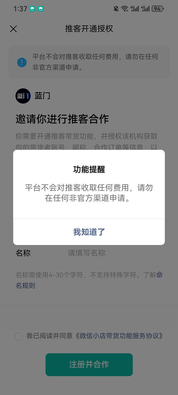 微信官方明確提醒:平臺不會對推客收取任何費用,請勿在任何非官方渠道申請。