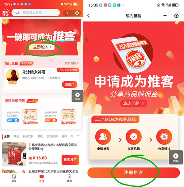 點擊小程序進入“一鍵推客”,點擊如圖所示“立即加入”