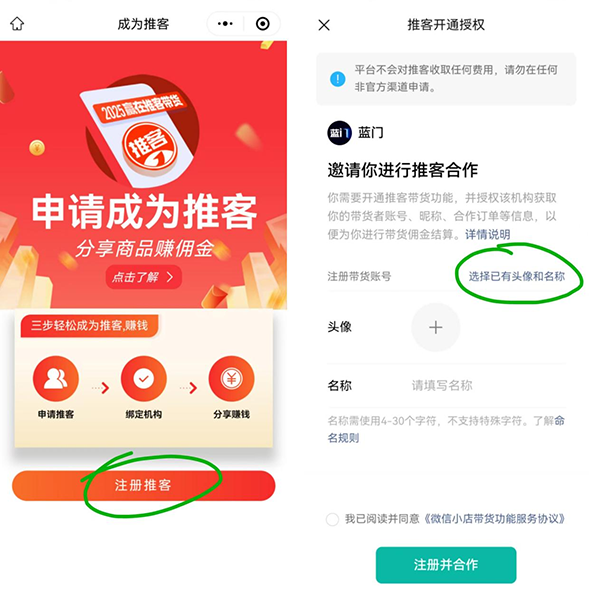 注意:當前申請推客,都是通過授權的微信小店機構服務商!(已經有一批微信小店的機構服務商,他們通過微信官方的接口,幫助推客開通申請。)