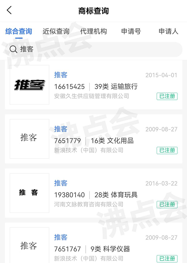 2009年8月27日,新浪悄然提交了“推客”系列商標申請,并在第9類(電子設備)和第16類(印刷品)成功注冊!這比微信公開提及整整早了16年。更早的2005、2007、2009年6月,也曾有先行者嘗試申請,卻均告失敗。新浪的“推客”商標如一顆被遺忘的種子,深埋于互聯網土壤。