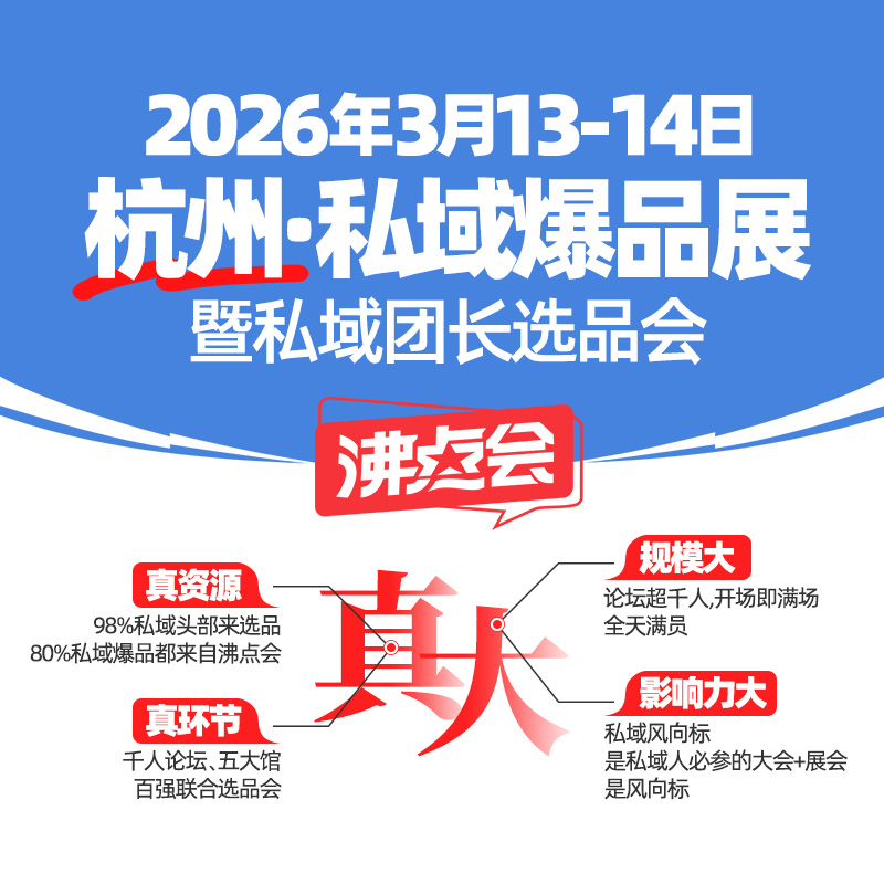 目前,2026沸點會私域爆品展的招展和觀眾預約工作已全面啟動。私域從業者可通過官方渠道獲取更多展會信息和參會指南。