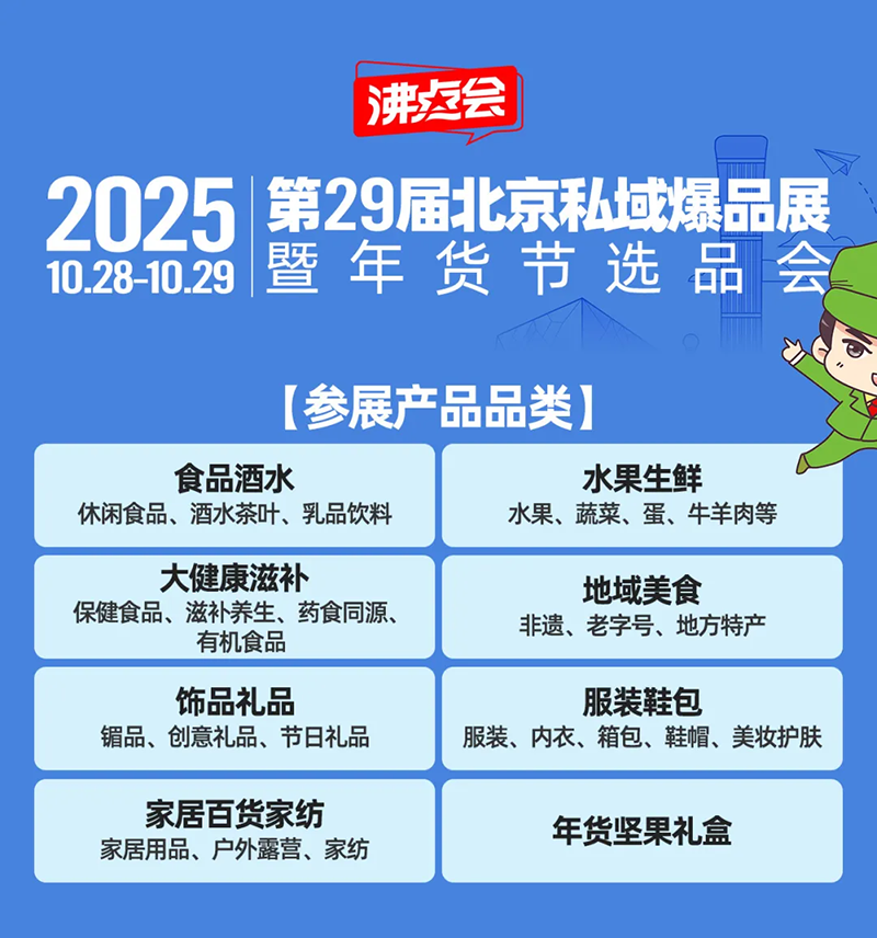 2025年10月28-29日,沸點會第29屆北京私域爆品展暨年貨節選品會即將登陸北京·中國國際展覽中心(朝陽館),攜手行業頭部玩家、優質品牌與渠道方,共同掀開私域“偷摸賺錢”的底層邏輯!
