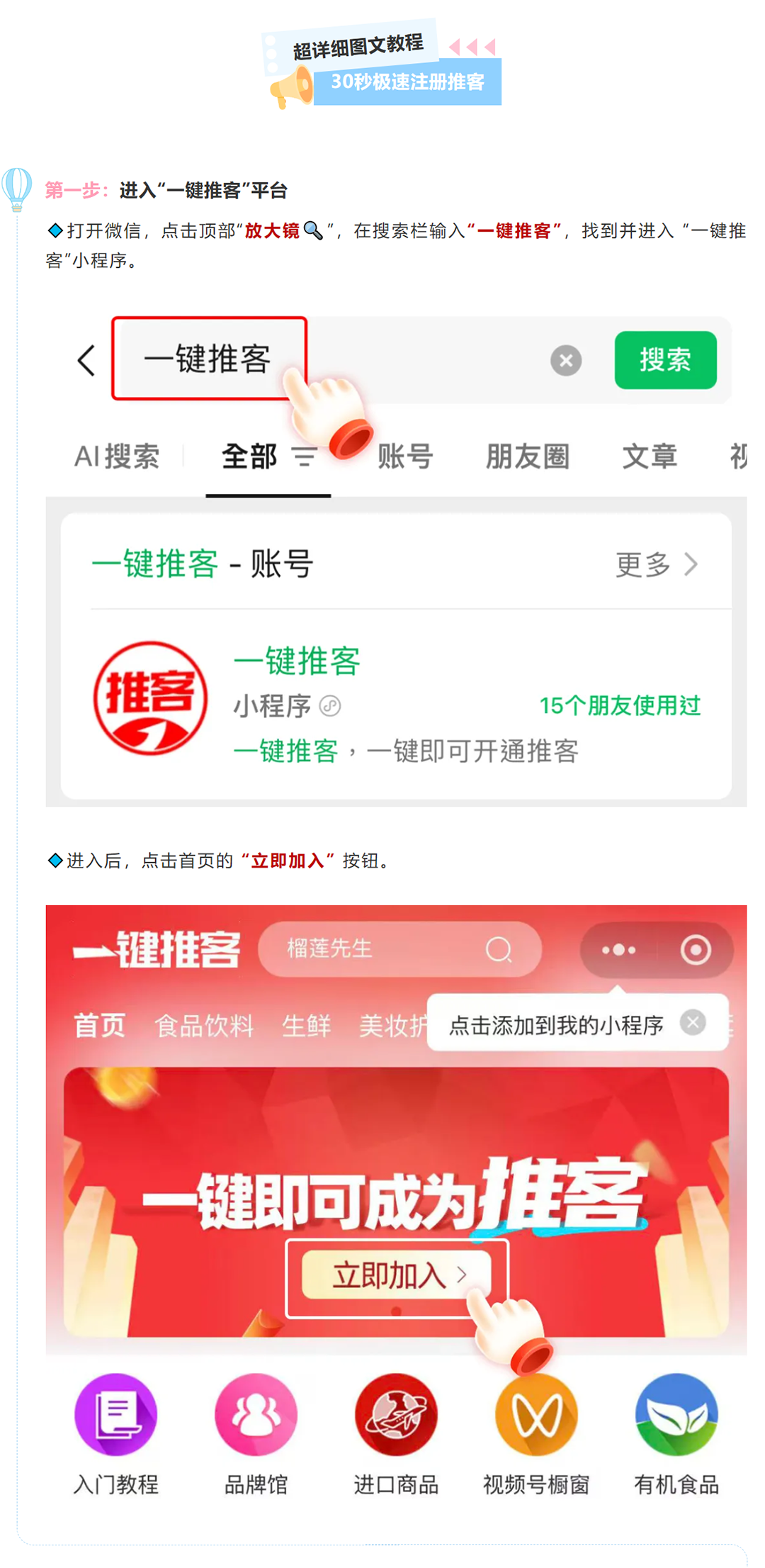 務(wù)必選擇經(jīng)過【W(wǎng)X官方認(rèn)證】、具備WX小店服務(wù)商資格的平臺,保障你的權(quán)益與收益安全。例如我們今天實操使用的平臺:一鍵推客!