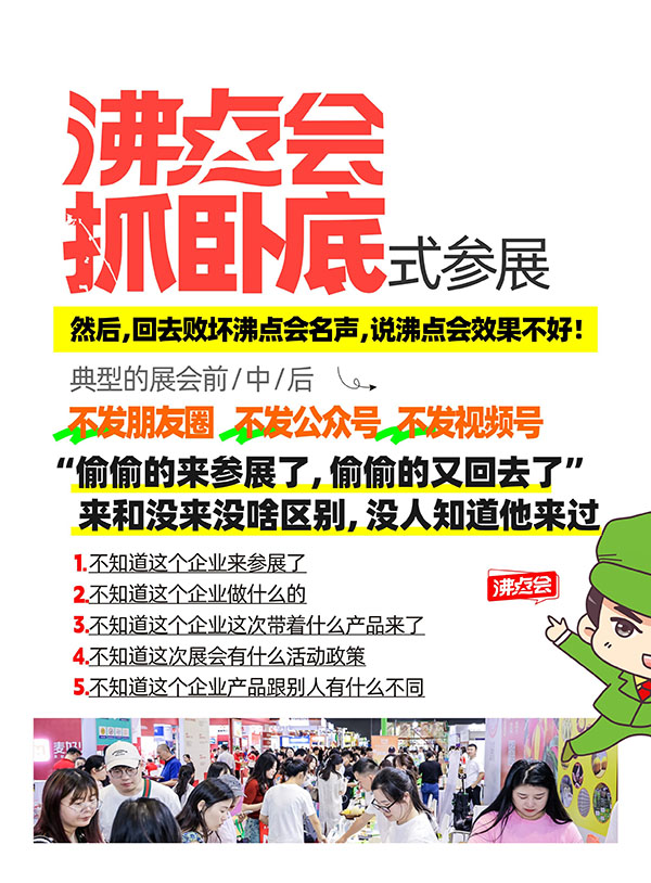 朋友圈、社群、短視頻、海報……哪怕每天發一條,也是在告訴所有人:我在沸點會,我有好品,我在等你。你發的每一條內容,都是在為自己的展位引流,都是在降低渠道找到你的成本。