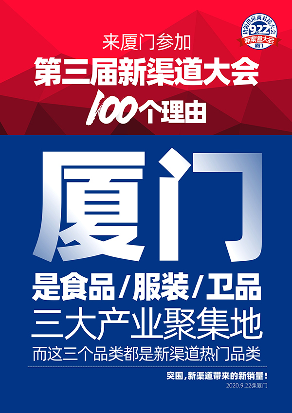 9月22號(hào),廈門,第3屆新渠道大會(huì),一起【突圍,新渠道帶來(lái)新銷量】。