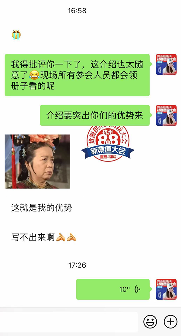 在我們922第10屆社群團(tuán)購大會(huì),我們就發(fā)現(xiàn)很多供貨商平時(shí)給平臺(tái)發(fā)了資料談不成合作,可是現(xiàn)場帶著樣品去平臺(tái)展示位馬上就和很多家平臺(tái)談成了合作。