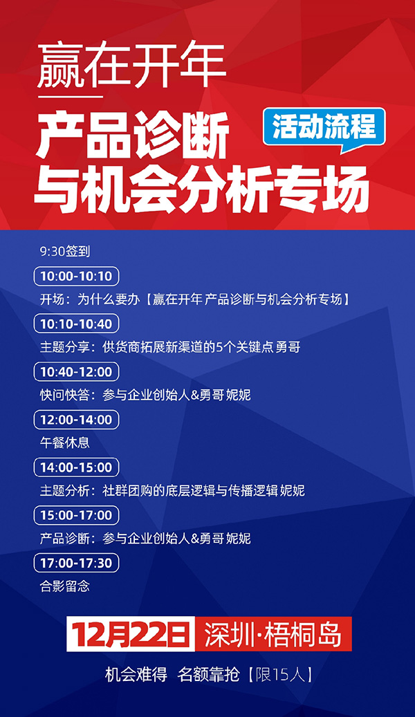 12月22號,深圳,勇哥將親自【坐診】,如果你有好產品,帶著你的產品來!
