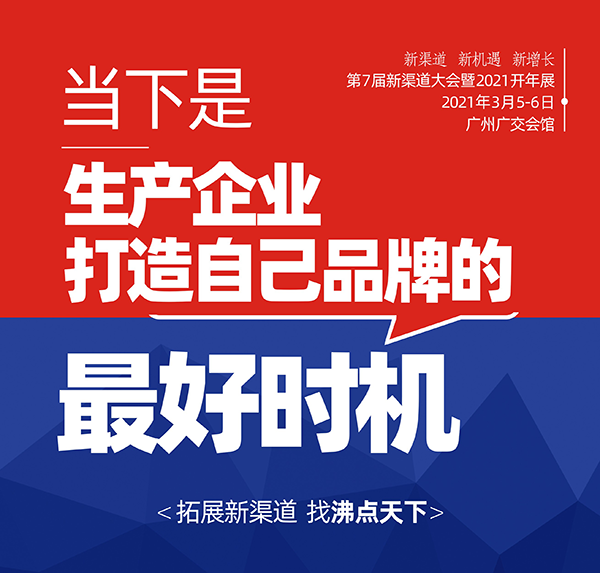 如果你也想拓展新渠道,來新渠道大會展示你的品牌,展示你的實力,讓更多新渠道看到你,并且達成合作,第7屆新渠道大會暨2021開年展,2021.3.5-6 廣州廣交會館,你一定要來。