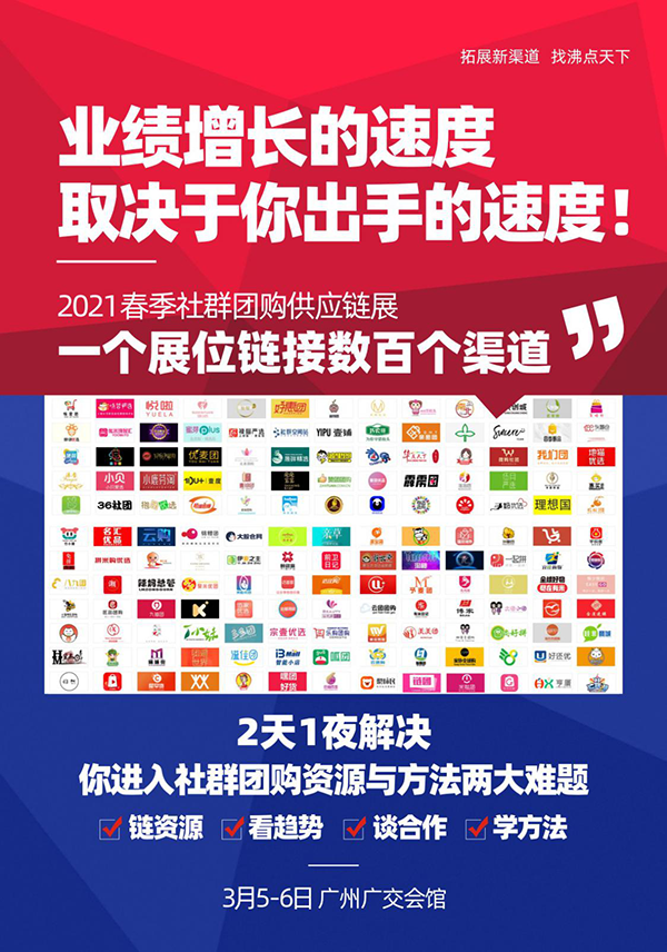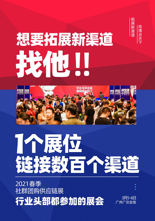 所以,成為2021春節社群團購供應鏈展的展商,不僅可以獲得展會宣傳,還可以獲得春節前的宣傳,趕緊報名2021春節社群團購供應鏈展吧,3月5-6號,廣州廣交會館見!