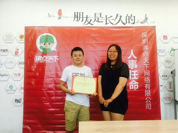 17年,第一次承蒙領導厚愛,榮升為沸點天下銷售主管。