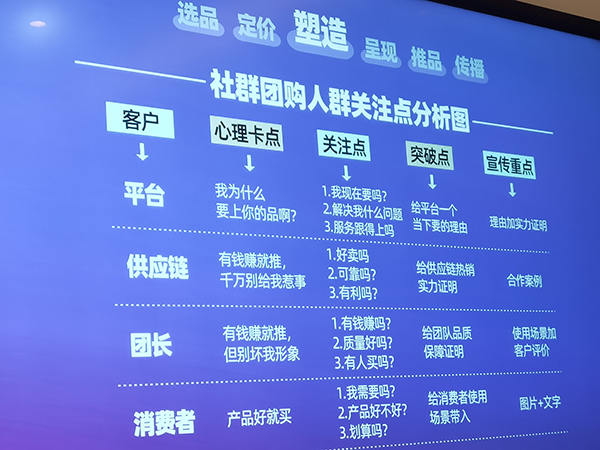 但社群團購,必需要讓平臺覺得這個人信得過,產品才有上架的機會;必需要讓團長覺得方便傳播,她才會去推廣;必需要讓消費者覺得產品我需要,她才會購買。