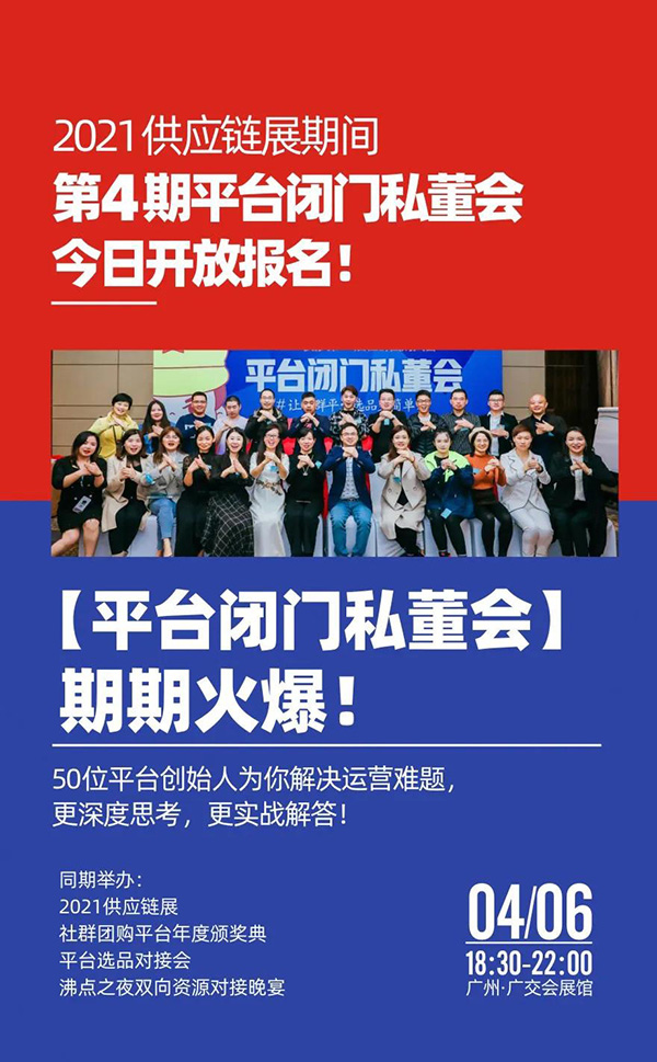 2021供應(yīng)鏈展覽會(huì)期間,第4期平臺(tái)閉門(mén)私董會(huì)報(bào)名活動(dòng)今日起正式啟動(dòng)。